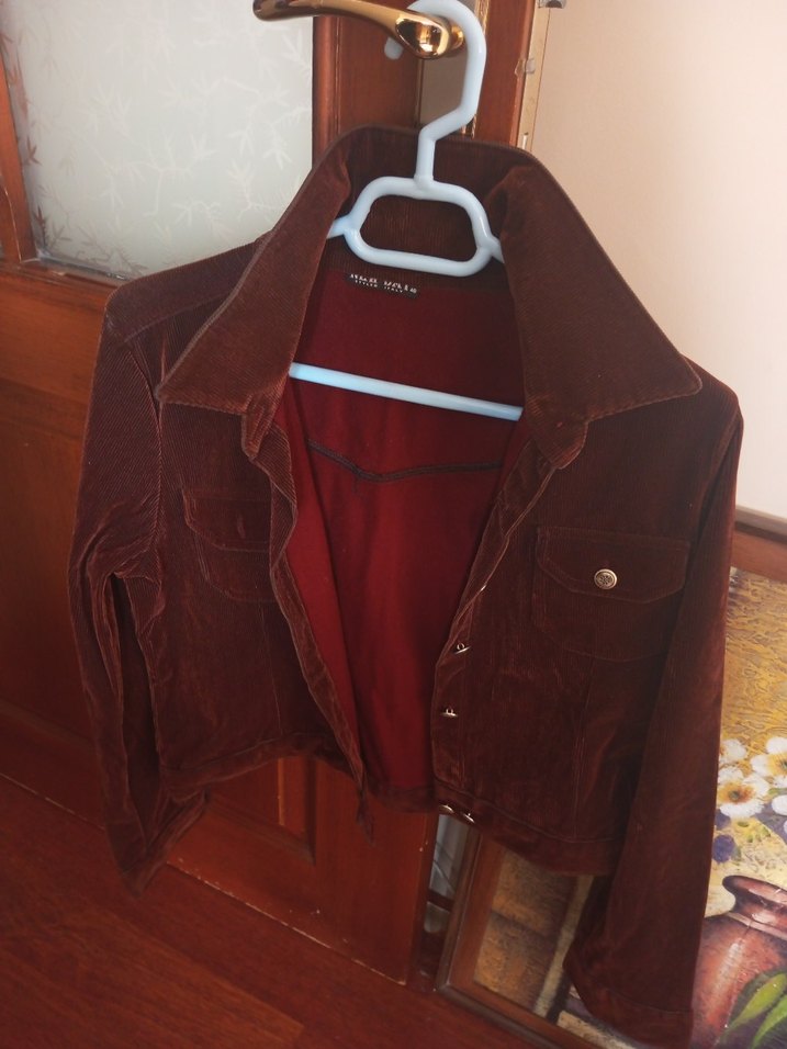 L beden dışı kadife kahverengi içi kırmızı düğmeli ceket kadın