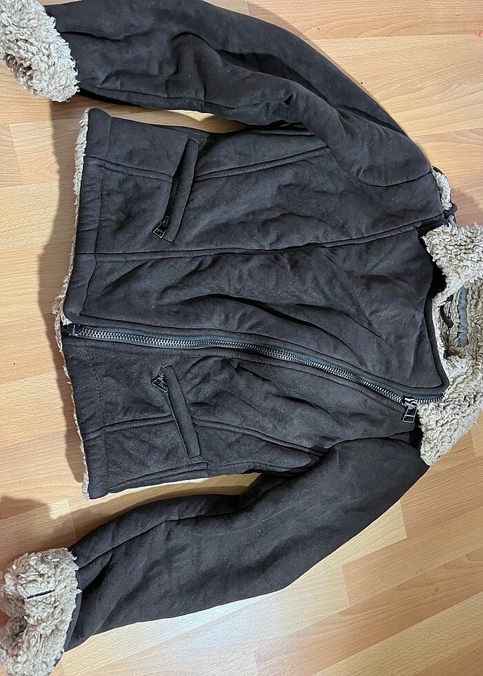 kahverengi kısa kaban yunlu içi çok sıcak tutar fermuarlı