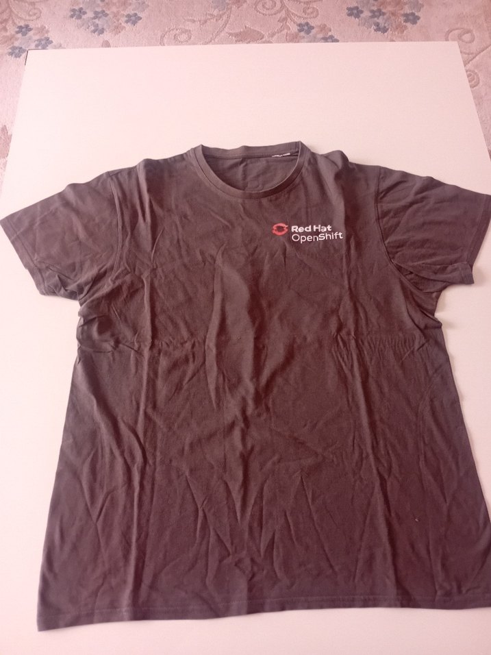 Kahverengi, kısa kollu ve bisiklet yaka erkek tişörtü. İnce ve parlak dokulu kumaştan, önünde Red Hat OpenShift baskısı bulunur. Günlük kullanıma uygundur.