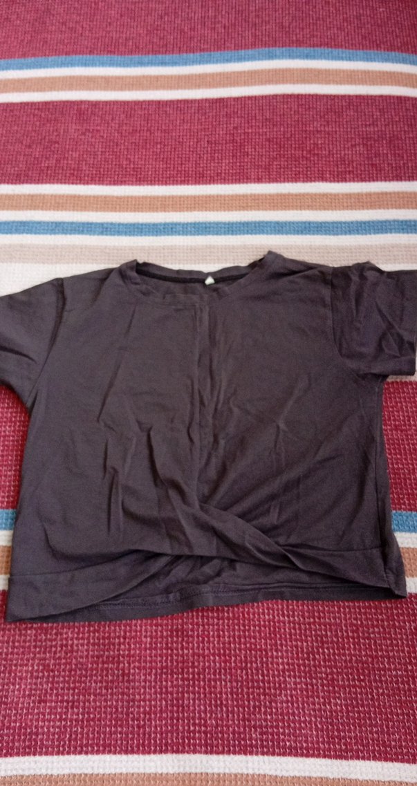 Kahverengi pamuk kumaştan, kısa kollu ve bisiklet yaka, rahat kesimli günlük sokak stili tişört.