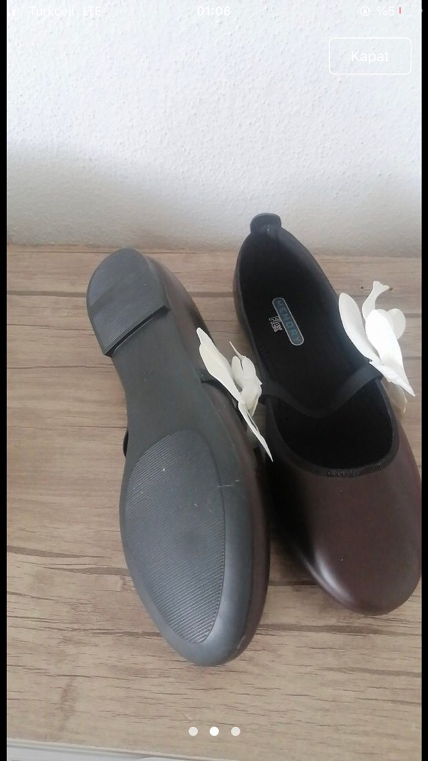 Koyu kahverengi kauçuk kız çocuk babet ayakkabılar, üzerinde fiyonk detayıyla sade ve klasik bir tarz sunar.