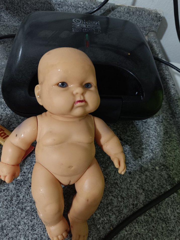 Detaylı yüzü ve yumuşak gövdesi olan klasik kahverengi bebek. Kol ve bacakları hareketlidir.