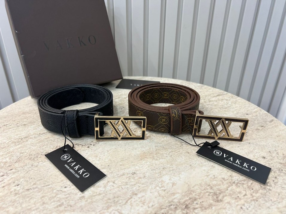 Kahverengi deri kemer, klasik stil ve altın tonlu tokasıyla dikkat çekiyor. Sokak modasına uygun, kemerli ve zarif bir tasarıma sahip. Üzerinde 'AKKO' ve 'KO' yazıları bulunur.