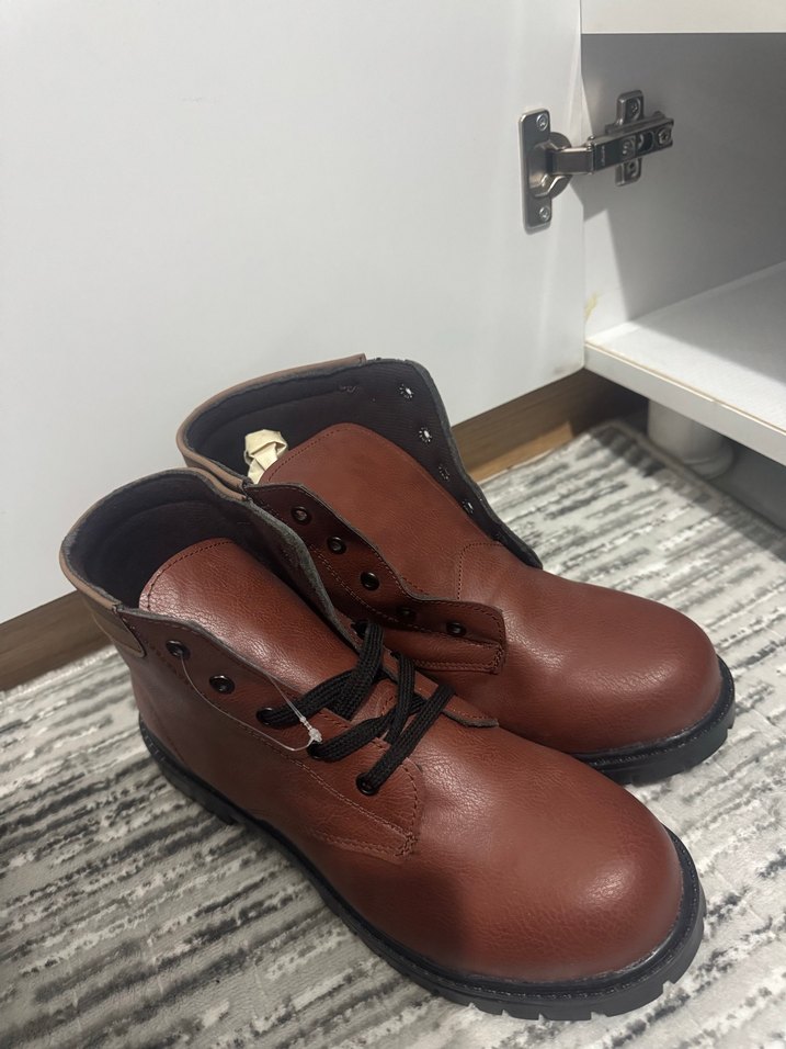 Koyu kahverengi, klasik tarzda erkek botu. Tokalı ve desensiz, konvansiyonel yapıda bir model.