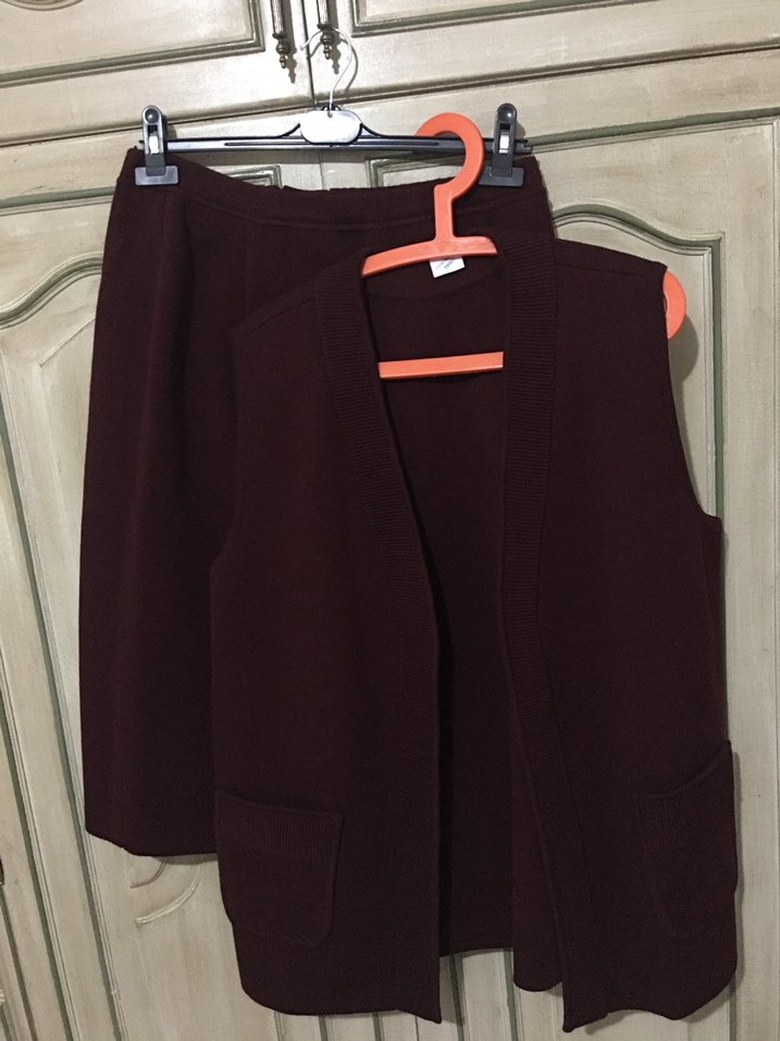 Bordo kadın takımı, kısa etek ve kemerli, kesik yakalı yelekten oluşur. Çelik örgü tiriko ve sıcak bir kumaştan yapılmıştır, rahat kesim ve minimalist tarz sunar. Ürün çok kaliteli yelek yandan yırtmaç detaylı etek boy 68 cm basen 54 cm yelek boy 73 cm iki koltuk arası 56 cm tek tek de satabilirim iade yoktur