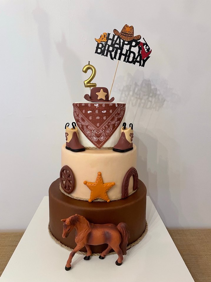 Üç katlı , kahverengi tonlarında kovboy temalı doğum günü pastası. At figürü ve kovboy şapkalı "Happy Birthday" süsü içerir. Doğum günü için 1 kere kullanılmıştır kovboy konsept pasta şeker hamuru ile yapılmış olup içi strafordur üzerindeki çizme şapka at nalı şerif simgesi ve tekerlek temudan alınmıştır plastiktir görünümü şeker hamuru gibi gözüküyor masanın üzerindeki banner happy birthday yazısı tavanda gözüken balon altındaki kovboy resimleri ve duvardaki pankart olmak üzere bu şekilde kiralama yapabilirsiniz bebek için kostümde mevcut beden 12-18 ay dır İstanbul Eyüp Alibeyköy Yeşilpınar Kazım Karabekir İmar CengizTopel Gazi Mahallesi Sultançiftliği ikamet edenler elden teslim alabilir anne ve baba içinde sipariş edilmiş olan kovboy şapkası ve boyun için fularlarda elimde mevcuttur bilginize tam konsept olarak düşünürseniz fiyat için bilgi verebilirim kiralıktır