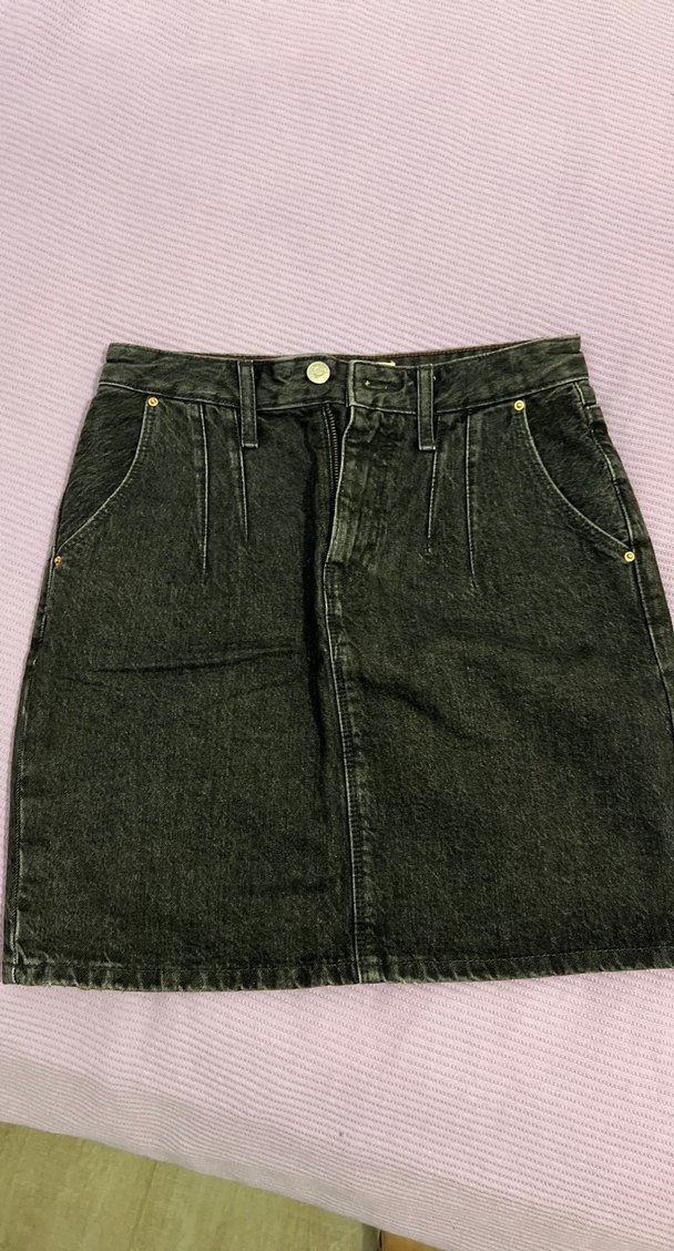 Kahverengi koyu denimden, günlük kullanıma uygun, rahat ve şık görünümlü, cep detaylı, dar kesim mini etek. Beli 37 cm