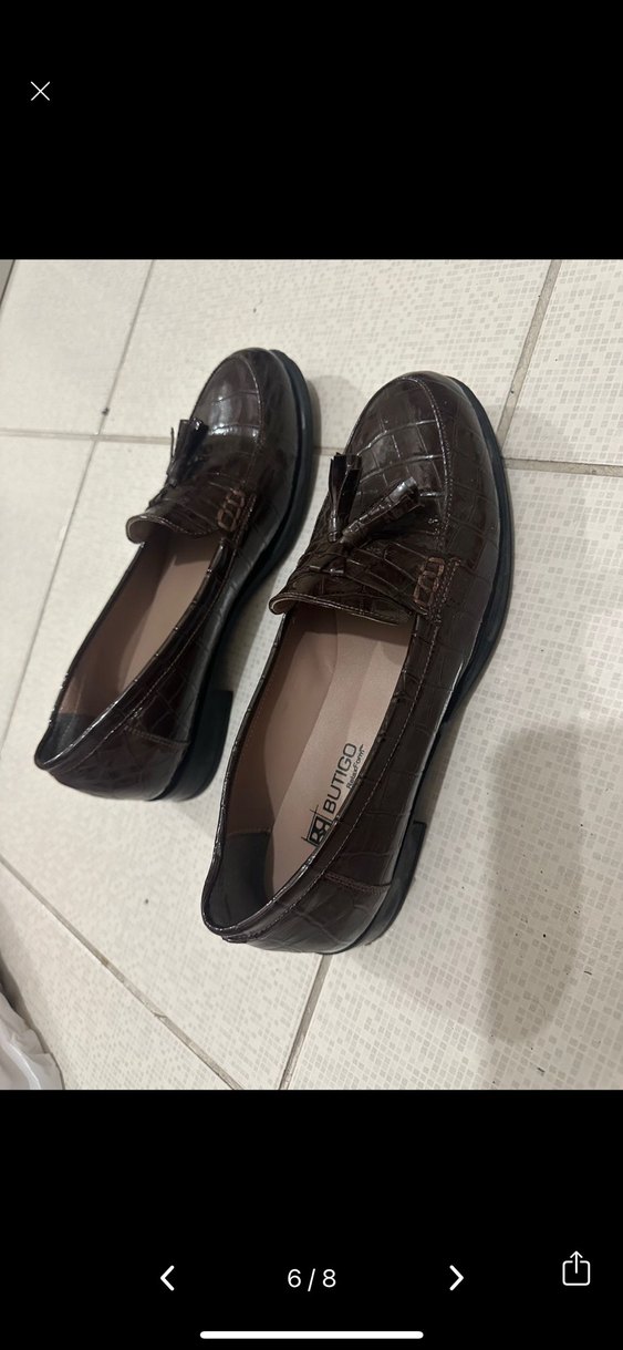 Kahverengi kroko desenli, tokalı erkek klasik ayakkabılar. Kauçuk tabanlı, ofis ve sokak stili için uygun. 1 kere gıyıldı ofis için