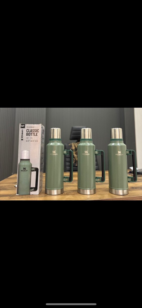 Kahverengi renkli, kulplu ve paslanmaz çelikten yapılmış klasik termos şişe, içeceklerinizi sıcak tutar. ☕