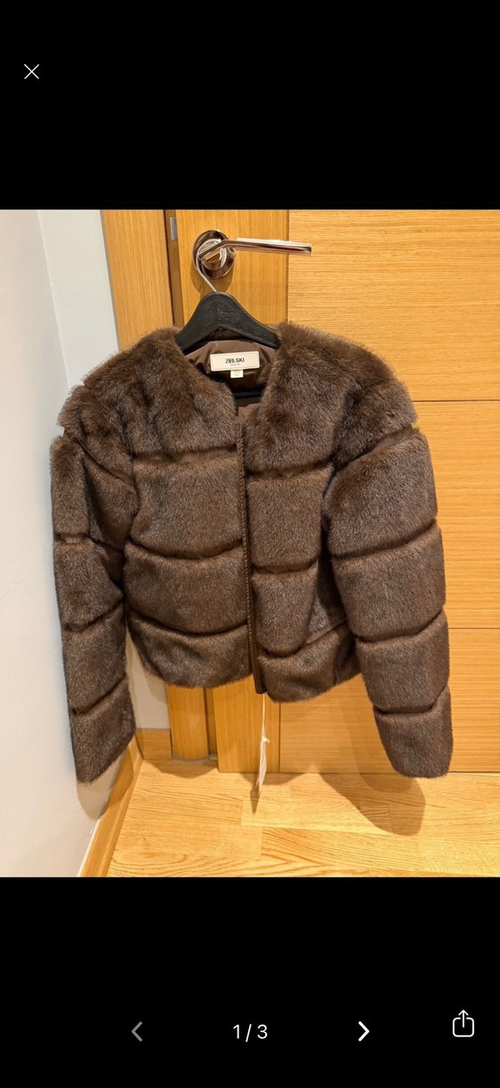 Kahverengi kürk detaylı, uzun kollu ve bisiklet yaka kadın mont. Fitted kesimi ve midi boyu ile günlük sokak modasına uygun rahat bir parça.