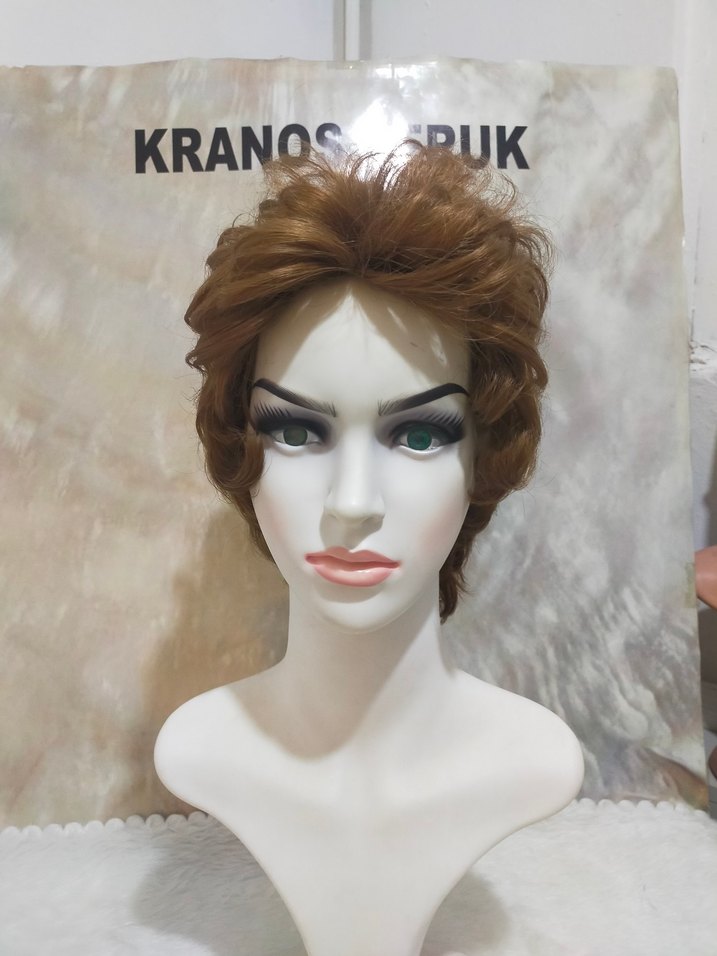 Kahverengi, sentetik kumaştan yapılmış, kürk detaylı vintage tarzı peruk, avant-garde ve modaya uygun stiller için ideal. trestepe peruk