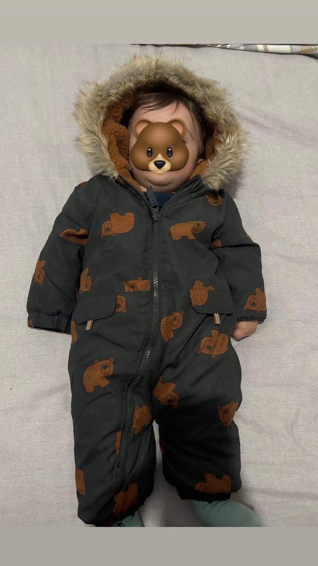 HİÇ KULLANILMADI BEBEĞİME KÜÇÜK. Almanyadan geldi. Kar montu. Kahverengi, kürklü detaylı, yumuşak ve sıcak tüylü kumaştan yapılmış, ayı desenli normcore tarzda bebek erkek astronot tulum.