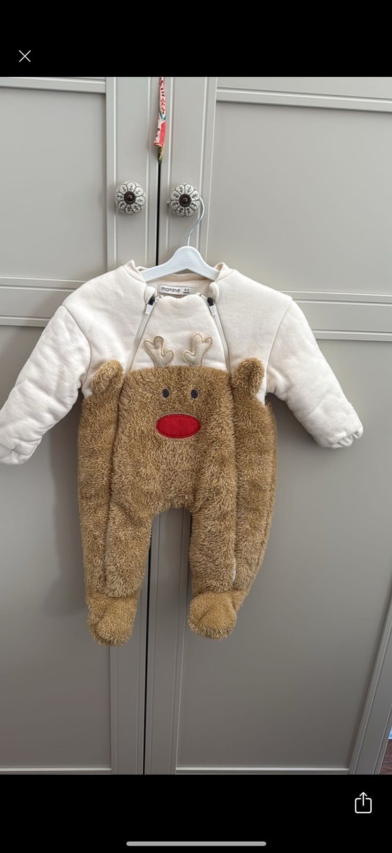 Açık kahverengi, yumuşak kürklü detaylara ve nakış desenlere sahip bebek tulumu. Street wear tarzında, rahat ve sıcak tutan kumaşlıdır. ❄️