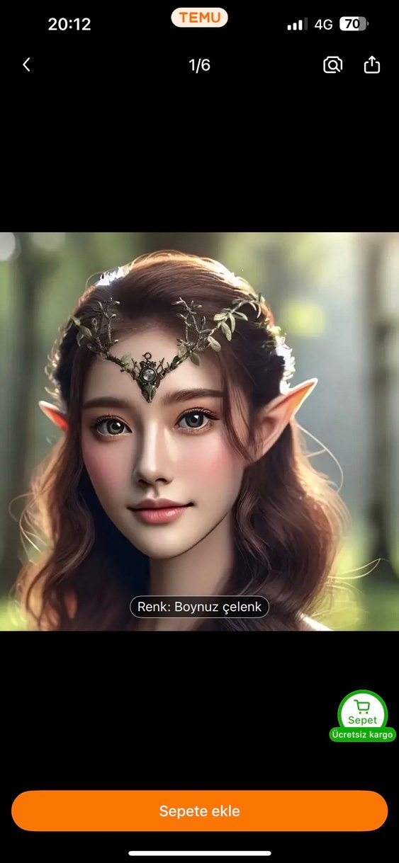 Kahverengi Kürklü Boynuzlu Örgü Tac Gotik taç elf tacı