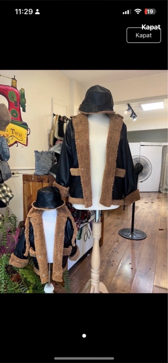 Kahverengi deri mont, kürk detaylı kenarları ve kapüşonlu tasarımıyla düzenli kesime sahiptir. Sokak stili için uygundur.