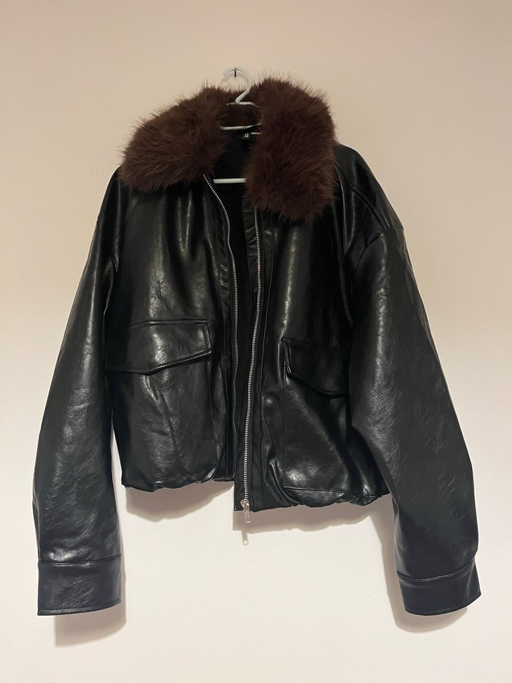Hiç giyilmedi etiketi de var isterseniz eklenebilir. Denemeden aldım küçük geldi maalesef. Kahverengi deri ceket, kürklü yaka ve bol kesimiyle sokak modasına uygun. Uzun kollu, yakalı ve midi boyda, günlük kullanıma uygun.