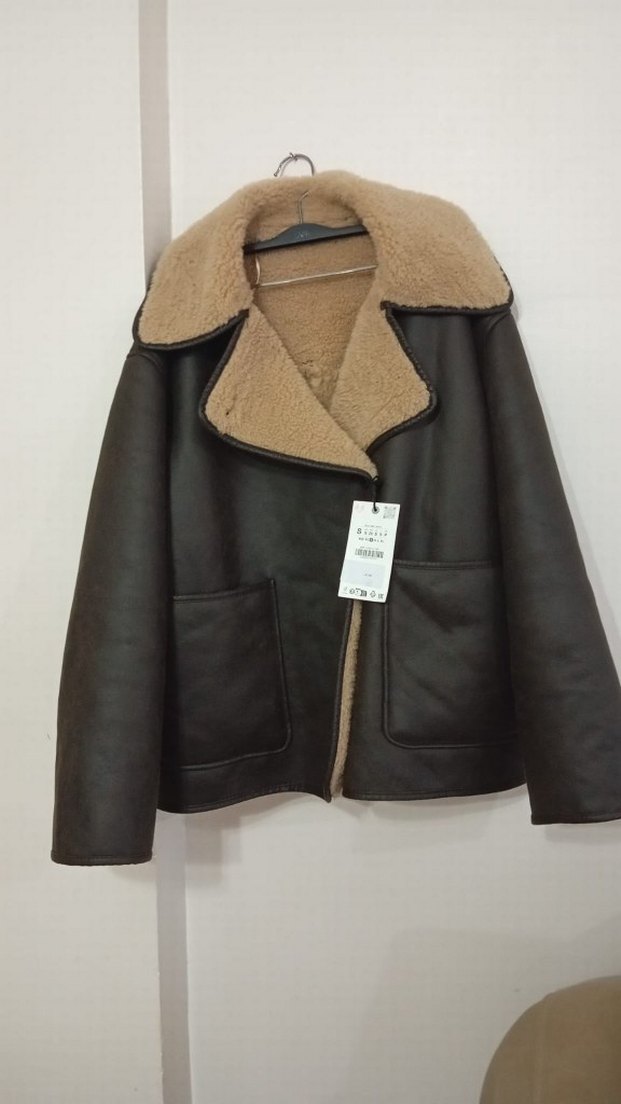Kahverengi deri ceket, kürklü detaylı yakası ve uzun kollu yapısıyla rahat ve şık bir sokak tarzı sunar. Normal boy ve regular fit.