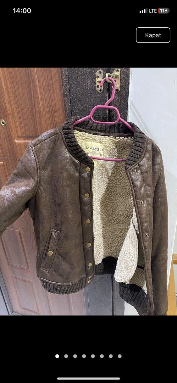 Kahverengi Kürklü Deri Kadın Mont Mango