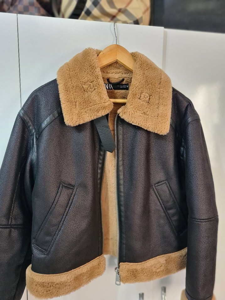Kahverengi deri ceket, kürklü yakası ve etek ucu ile, regular fit ve askılı kollara sahip, sokak stili için uygun. ( Zara kürklü Mont cok beğendiğim ve en pahalıya aldığım bu tarzın en iyi montu ancak boyum 1 78 bu mont omuzdan 52 cm kemer hizasinda kalıyor kullanamadım sadece dolapta durdu etiketi yok ancak kullanilmadi tüy dokmuyor
