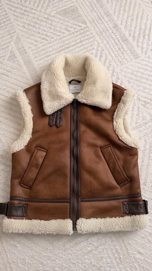 Kahverengi kolsuz deri ceket, kürk detaylı, dar kesim, kesik yaka ve normal midi boyda. Rahat ve trend sokak stili için uygundur. Yeni gibi 1 kez giydim dolabımı boşaltmak için satıyorum Stradivarus orjinal S beden