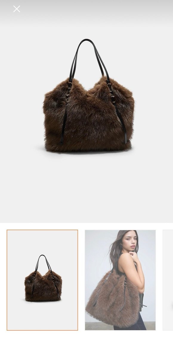 Kahverengi deri çanta, kürk detaylı ve leopar desenli, günlük kullanıma uygun çağdaş ve rahat bir tasarıma sahiptir.