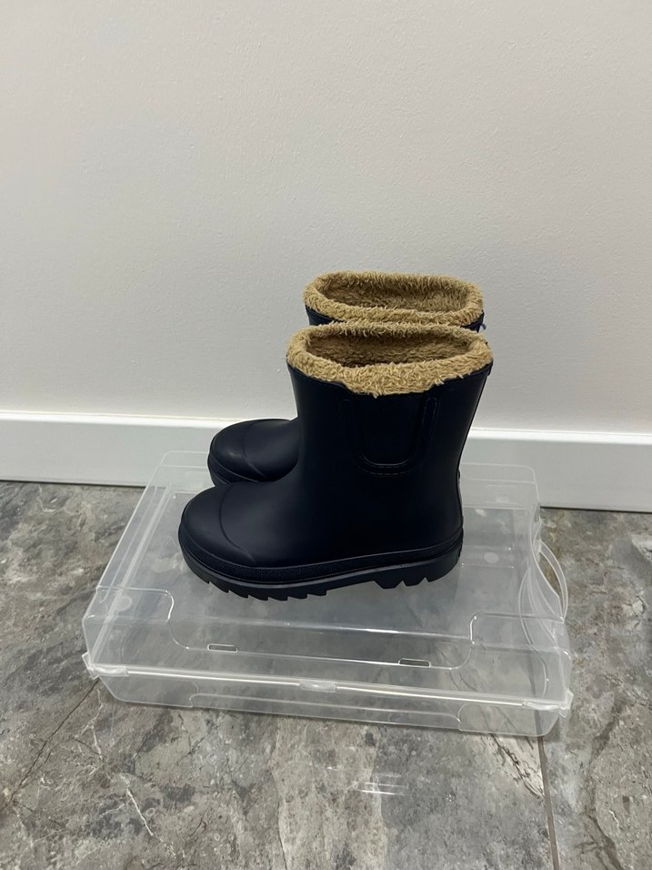 Kahverengi kauçuk malzemeden, içi kürklü, desen içermeyen erkek çocuk botu. Rahat ve sıcak tutar.