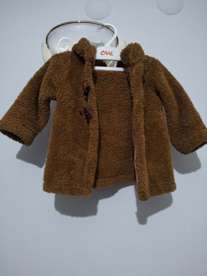 Erkek çocuklar için kahverengi, kürklü detaylı, bol kesim kaban. Yumuşak ve sıcak kumaştan, yakası kesik model sokak tarzında.