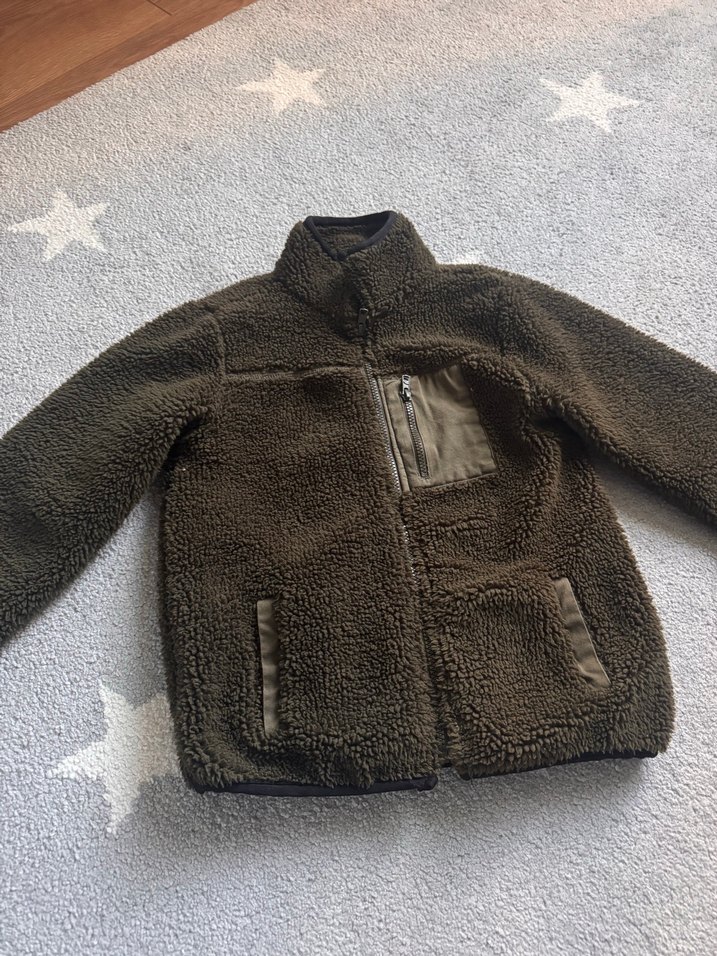 Bu kahverengi erkek polar mont, kürklü dokusu, kesik yakası ve bol kesimi ile dikkat çeker. Uzun kollu ve fermuarlı ceplidir, günlük kullanıma uygundur. (9-10y)