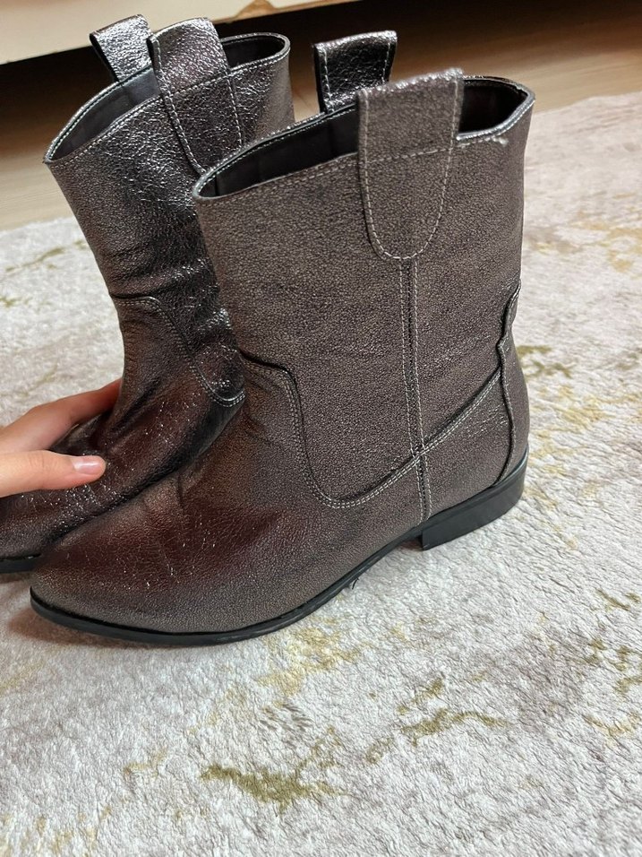 Kahverengi deri, kürklü detaylı kadın botları, dolgu topuklu ve bohem tarzda, günlük rahat kullanıma uygun.