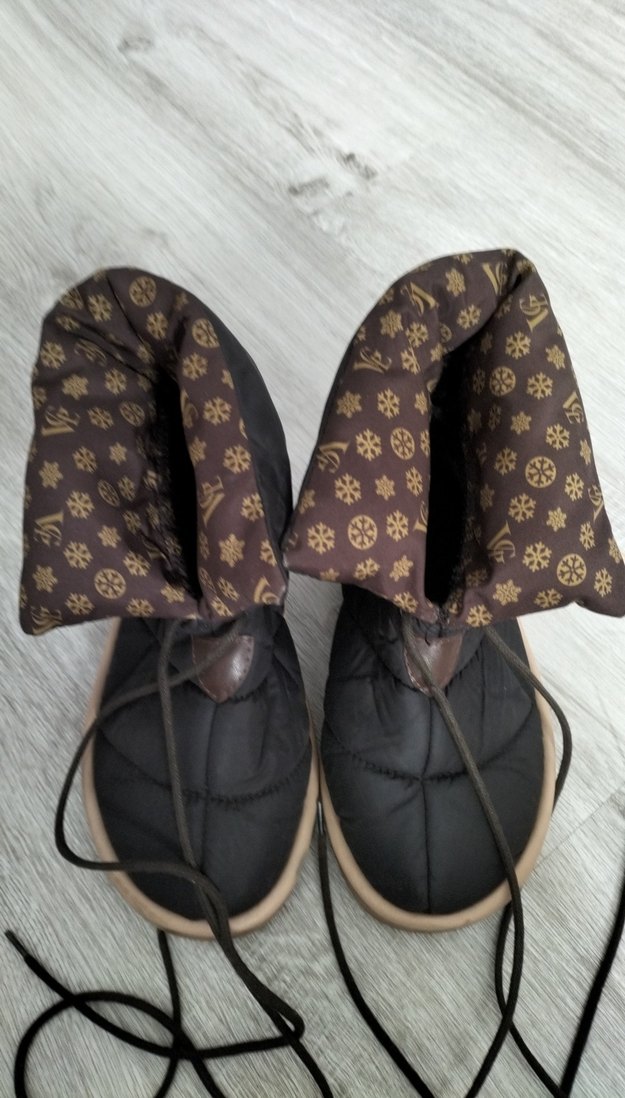 Kadın botları, dolgu topuklu ve kürklü detaylara sahiptir. Kauçuk malzemeden yapılmış, koyu kahverengi renkte ve desen içermez. Günlük kullanıma uygundur.