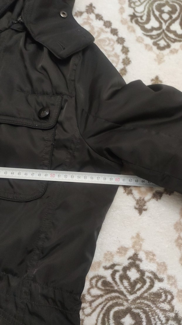 Kahverengi, kürklü detaylı, sentetik kumaştan yapılmış, notalı yakalı, uzun kollu, normal midi boyda, dar kesim kadın kışlık mont. ❄️iki dügmesi yok