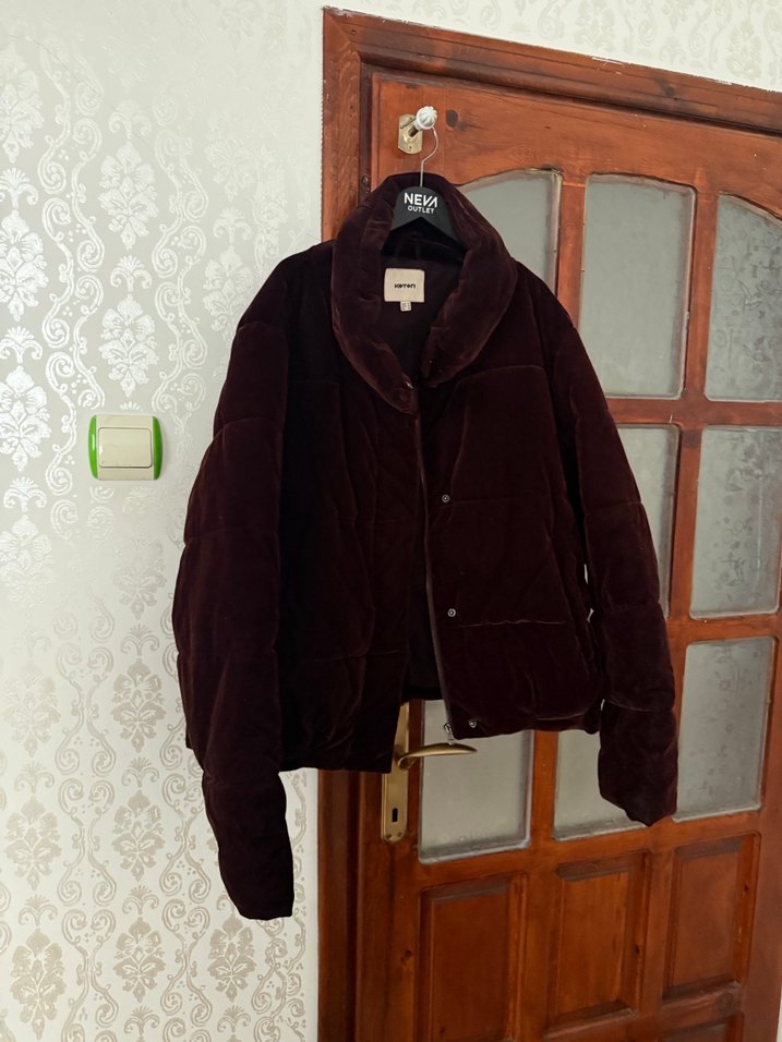 Kahverengi, kürklü detaylı kadın kışlık mont. Yumuşak ve sıcak kumaştan, bol kesim, notalı yaka ve uzun kollu. Midi boy, desen yok, rahat sokak stili için uygun. Bir kere tek giyildi.