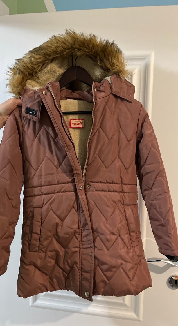 Kahverengi Kürklü Kadın Mont 12-13 yaş a uygun gül kurusu renk