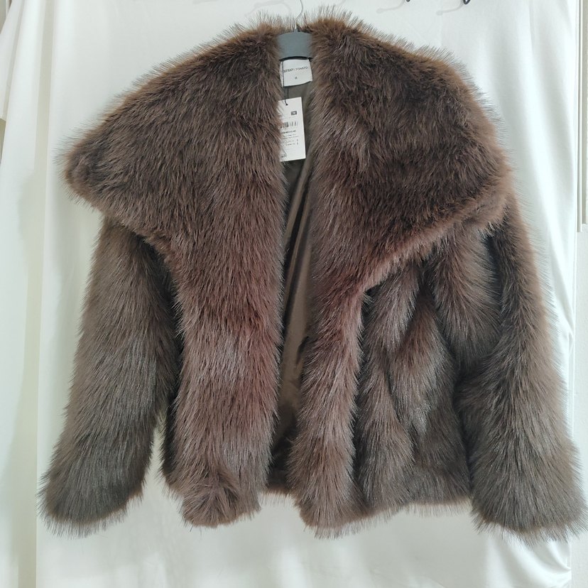 Kahverengi kürklü kadın mont, kesik yaka ve uzun kollu, modern ve vücuda oturan kesime sahip. Yumuşak ve rahat dokusuyla günlük kullanıma uygun. (Acı kahve renginde )