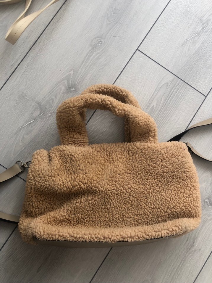 Kahverengi, yumuşak ve sıcak kumaşlı, kürklü detaylara sahip kadın omuz çantası, günlük sokak stiline uygun sade ve rahat bir tasarıma sahiptir.