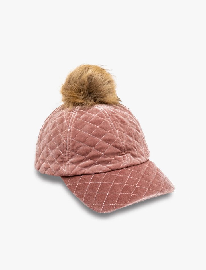 Pastel kahverengi kapitone sentetik kumaştan, üstü kürk detaylı kadın şapkası. Rahat ve retro tarzı yansıtır.