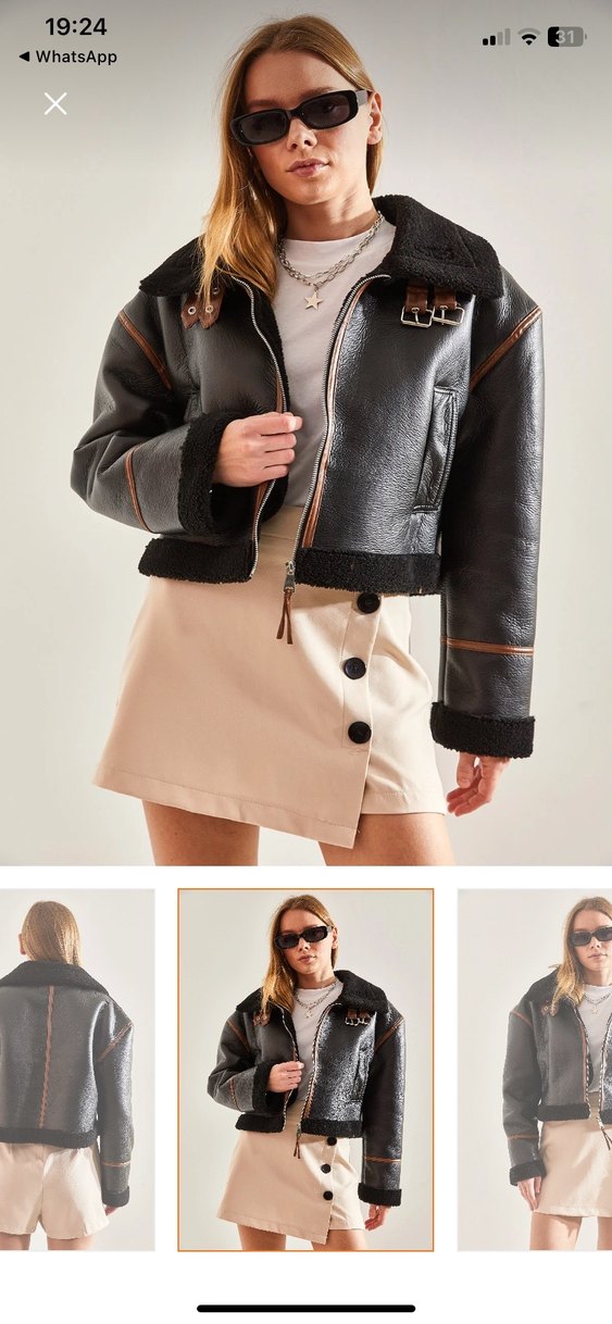 Kahverengi Siyah Kürklü Kısa Deri Ceket