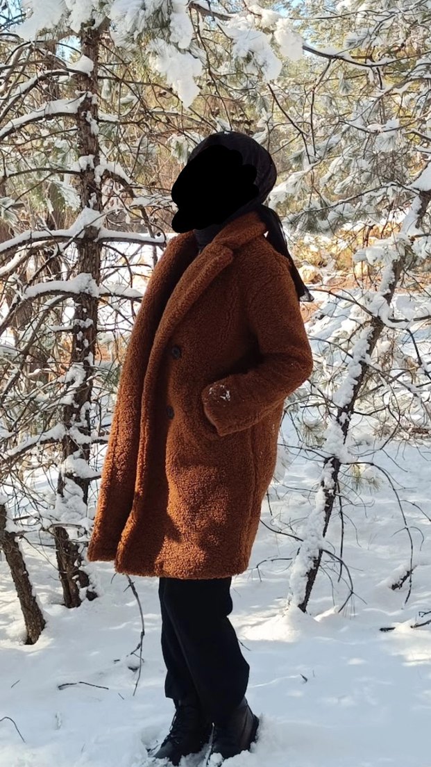 Kahverengi midi kaban, kürklü detaylı ve kesik yakalıdır. Yumuşak ve sıcak kumaştan, normal kesim ve uzun kolludur. Günlük sokak stili için uygundur.