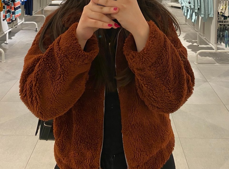 Kahverengi, uzun kollu, yüksek yakalı ve kürk detaylı, yumuşak ve sıcak kumaştan yapılmış midi uzunlukta, fit kesim kadın mont.