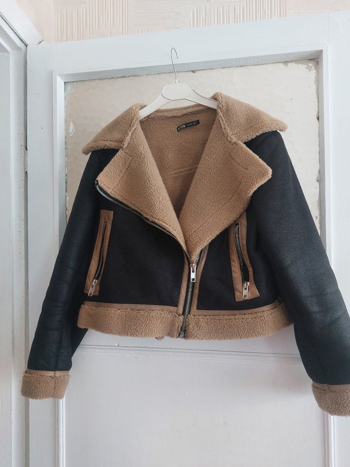 Kahverengi süet dış yüzeyi ve kürk detaylı, kısa boy, fitted kesim biker ceket. Notched lapel yaka ve fermuarlı ceplere sahiptir. Trendy ve rahat bir tarz sunar.