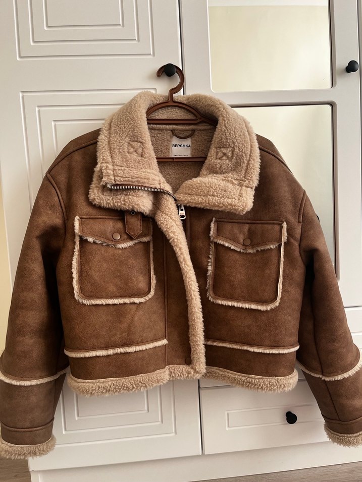 Sadece birkaç kere giydim. Normalde S giyiyorum ve kısa olmasın diye 1 beden büyük aldım o yüzden 38. Kahverengi süet ceket, kürk detaylı, kesik yaka ve bol kesimlidir. iki ön ceplidir. Hiçbir defosu yok. Oldukça sıcak tutuyor, kalın.