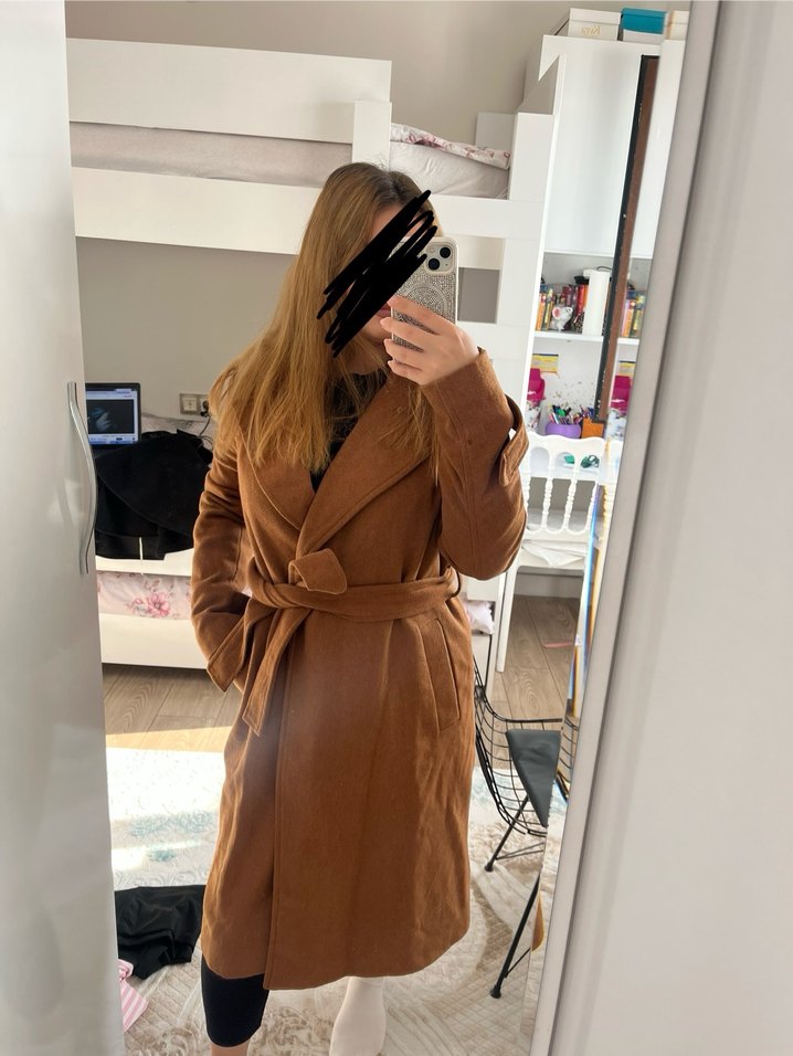 Kahverengi, kuşaklı ve uzun kollu kadın kaban. Yumuşak ve sıcak kumaştan üretilmiş, klasik ve şık görünüme sahip. Yaka ve yan ceplidir. Burdan aldım hiç giymedim yanında takılan kürkü de vardır onunla gönderimi sağlayacağım sorunsuz temizdir