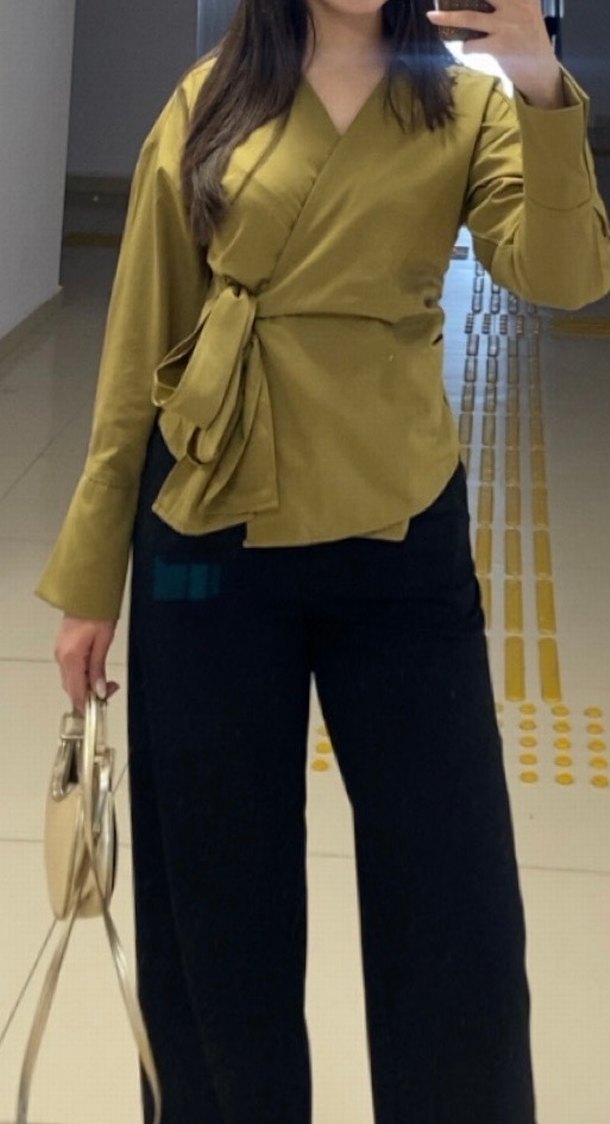 Kahverengi Kuşaklı Kadın Ofis Bluzu