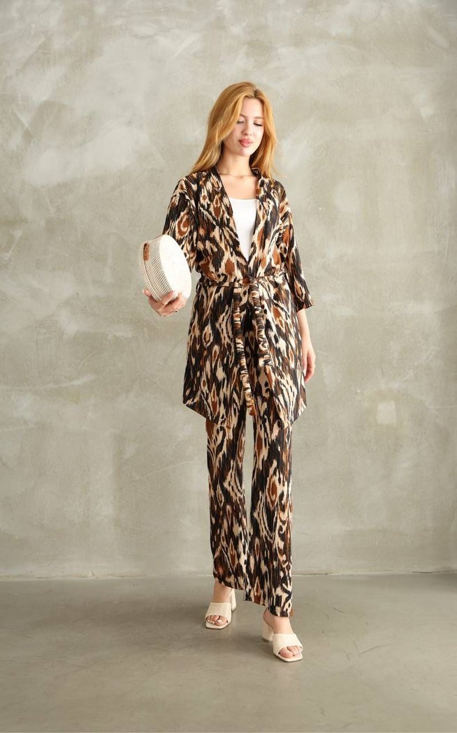 Kahverengi Kuşaklı Uzun Kadın Takım kimono