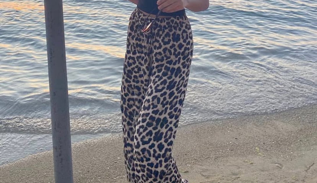 Kahverengi Leopar Desenli Bol Kesim Kumaş Pantolon