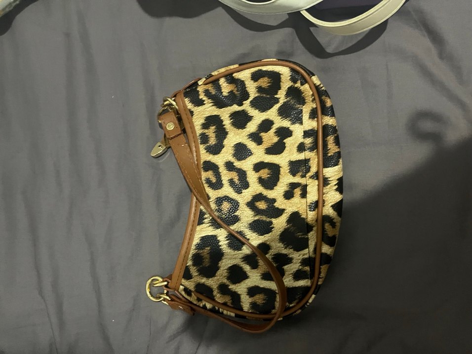 Kahverengi Leopar Desenli Deri Kadın Çanta