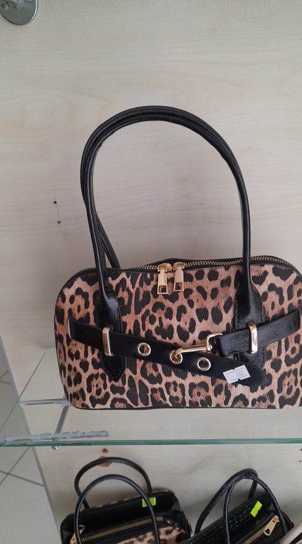 Kahverengi deri, leopar desenli kadın çanta, tokalı detaylarıyla klasik ve çağdaş tarzı bir araya getirir. Günlük kullanıma uygundur.