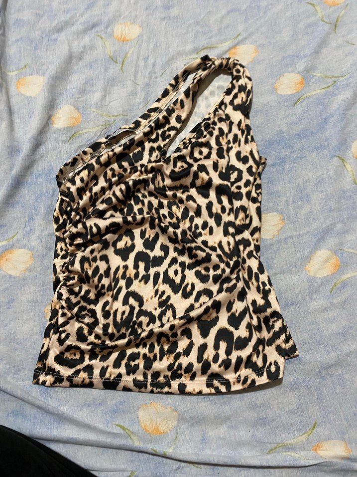 Kahverengi koyu leopar desenli, drapeli sokak modası tarzında kedi kıyafeti.