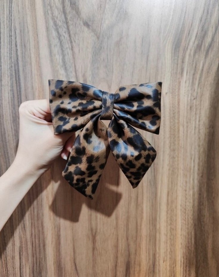 Yumuşak sentetik kumaştan yapılmış, kahverengi leopar desenli koyu fiyonk saç aksesuarı, bohem ve retro tarzlar için uygun.