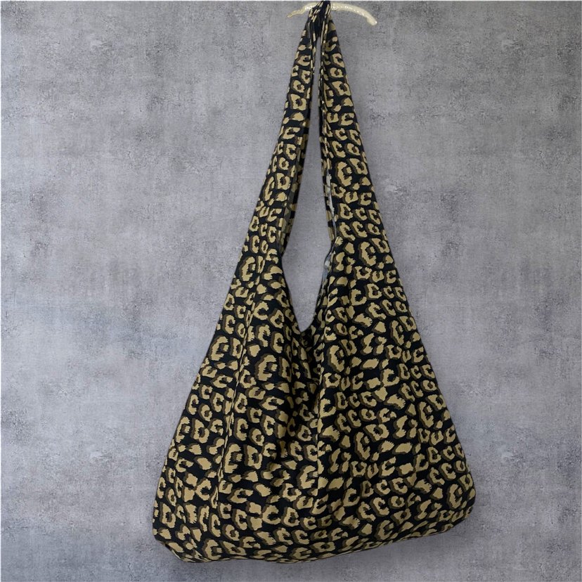 Kahverengi leopar desenli, fermuarlı kadın çantası, sentetik kumaştan yapılmış. Bohem tarzıyla günlük kullanıma uygun minimal retro havası verir.